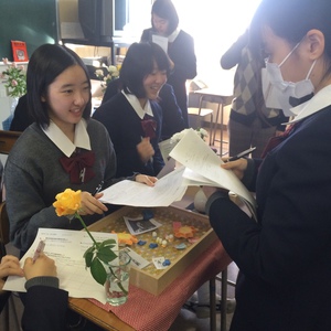 先日、本校の学校設定科目である発展科目「女性」にて高校3年生の生徒達による作品発表が行われました。本校の姉妹校であるノートルダム・サンノゼ・ハイスクールでも「女性」の生き方に関するアート作品を作るプロジェクト(Women’s Place Project)が行われています。今回清心での取り組みにあたり、授業前半ではフェミニズムアートと呼ばれたJudy Chicago氏の作品”Dinner Party”について学びを深め、何故アート作品を作るのか、Judy Chicagoがフェミニズムアートを始めた目的などをブレインストーミングしました。後半では高3生徒が作ったアートを挟んで高2生からの質疑応答。写真は熱心に質問する高2生の様子です。