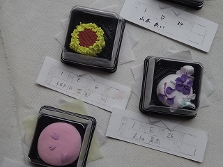 廊下でおいしそうな和菓子を見つけました。高校1年生の美術作品でした。