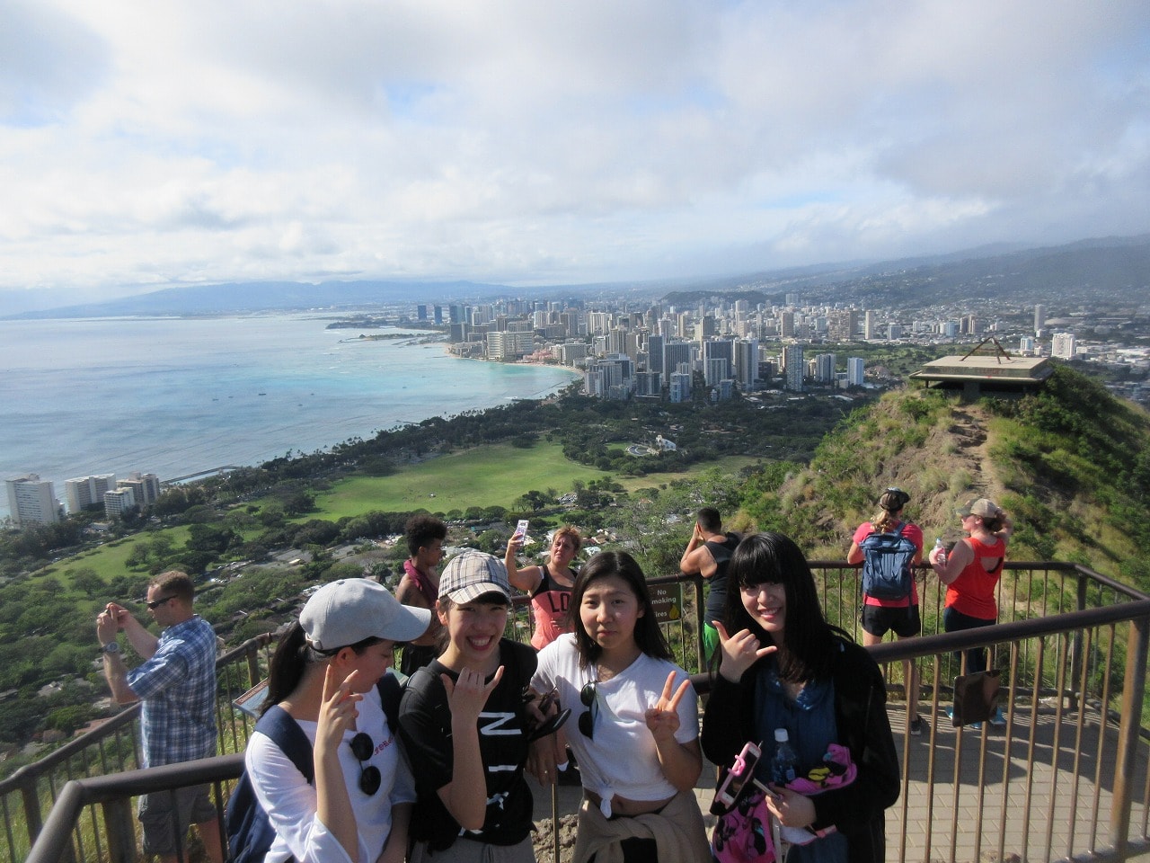 ダイヤモンドヘッド頂上からの景色。往復1時間だから余裕だと思っていたけど、かなり体力を使いました。頑張って登りきれば、虹がはっきりと見えて幸せな気持ちになりました。