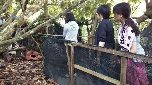 ポーリン温泉の近くの民家でラフレシアを見ました。2輪咲いていました。ラフレシアは花が咲くのがとても難しいらしく、つぼみが出来ると大切に育てるそうです。昔は生肉みたいに見えるため嫌われていましたが、現在は観光客のために育てているらしいです。大学の研究者が育て方のレクチャーもするそうです。