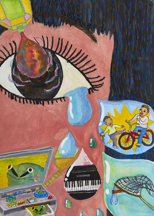 作品の説明:目薬型の液体記録媒体で、ドライブレコーダーのように見たものを録画できる。