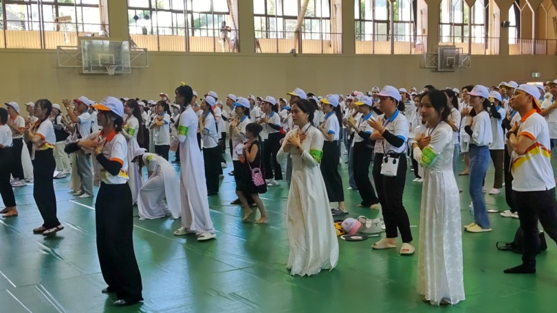 カトリック広島教区創立100周年記念の行事の一環として、8月26日・27日に本校を会場として、第1回広島教区在日ベトナム青年大会が開催されました。中国5県から300人を超える在日ベトナム青年が集い、「キリストのうちに一致しよう」をテーマに、聖体賛美式とミサおよび交流会や講話などが行われました。アレキシオ白浜司教様も御参加くださり、青年たちに感謝と激励のことばを述べられました。