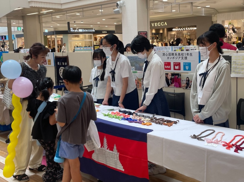 高1国際系とNDSUコースの有志生徒が、カンボジアシルクアクセサリーを販売しました。