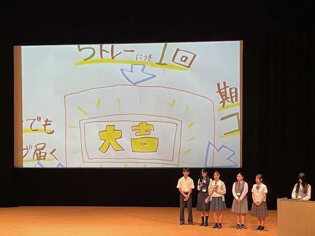 本校生徒がメンバーに含まれるチームが優秀なアイデアを考えたとして選出され、大きな舞台での発表も行いました。