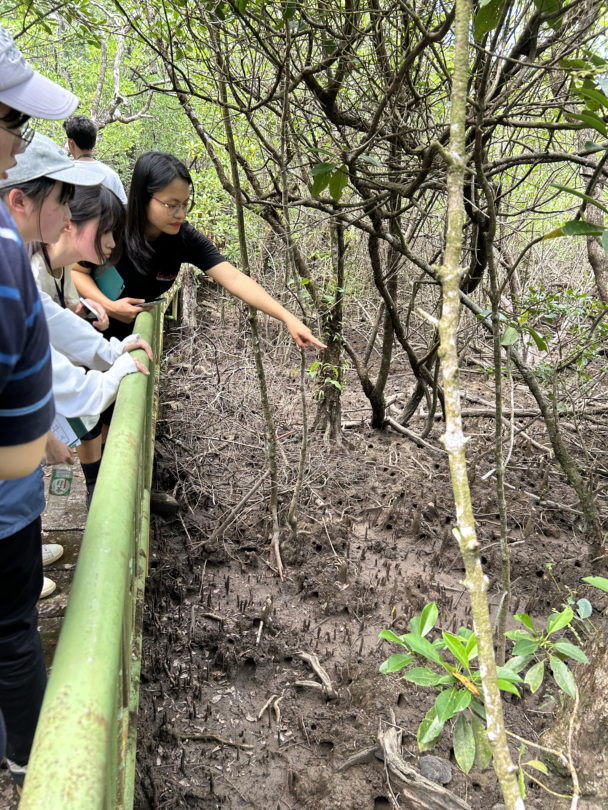 マングローブについて4種類の根を教えていただき、海側から陸へと根の種類が変化していく様子を観察しました。