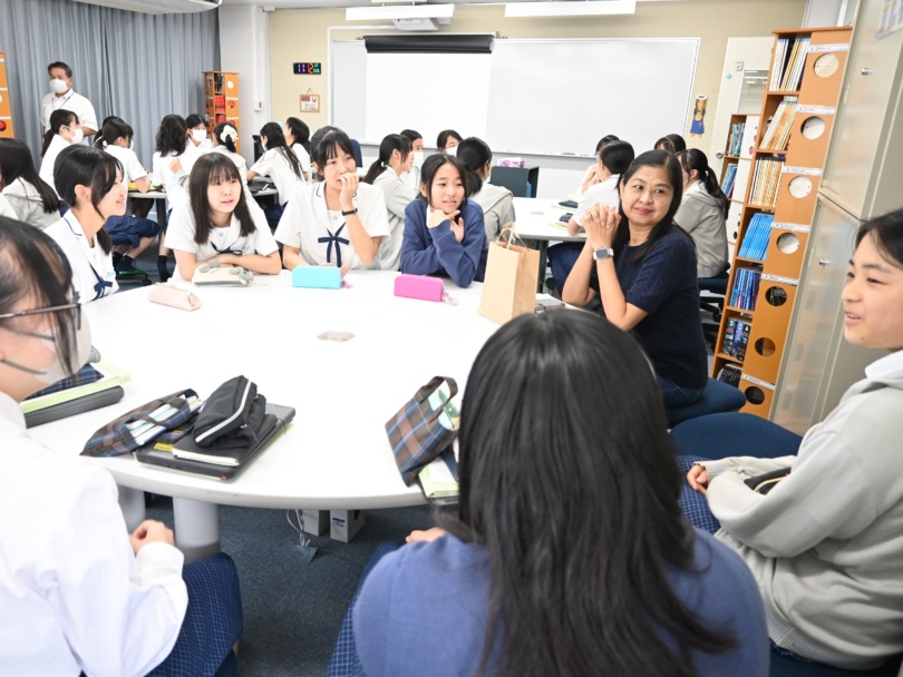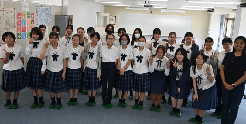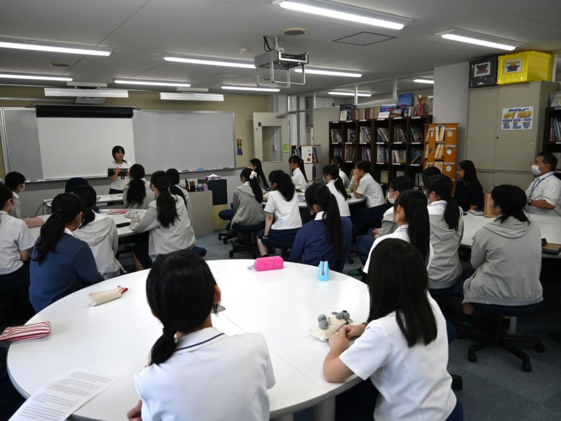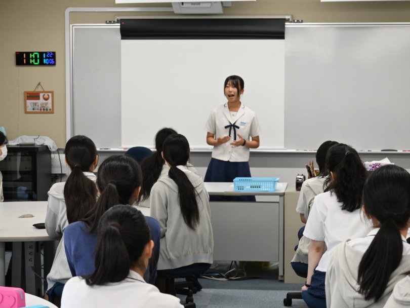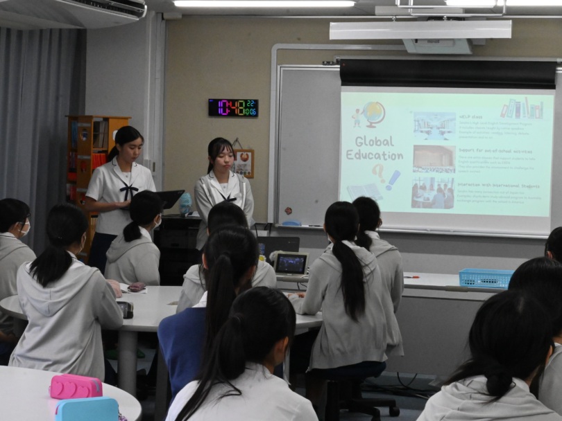 また高1・2生命科学コースの生徒同席のもと、代表生徒たちが学校紹介を英語で行いました。