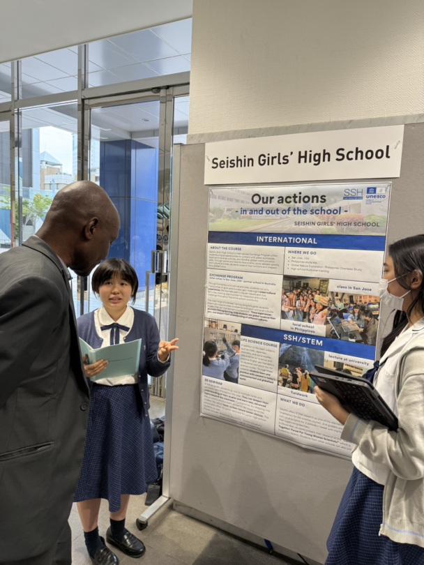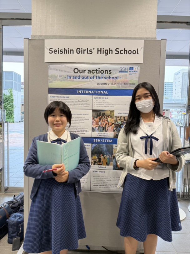 本校の生徒はポスタープレゼンテーションに参加し、校内外での取り組みについて英語でまとめ発表しました。