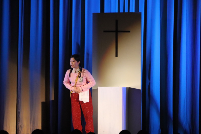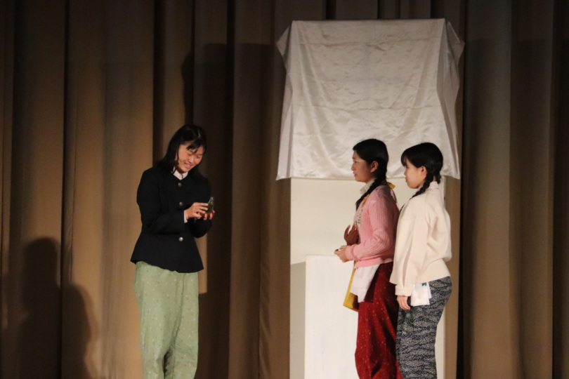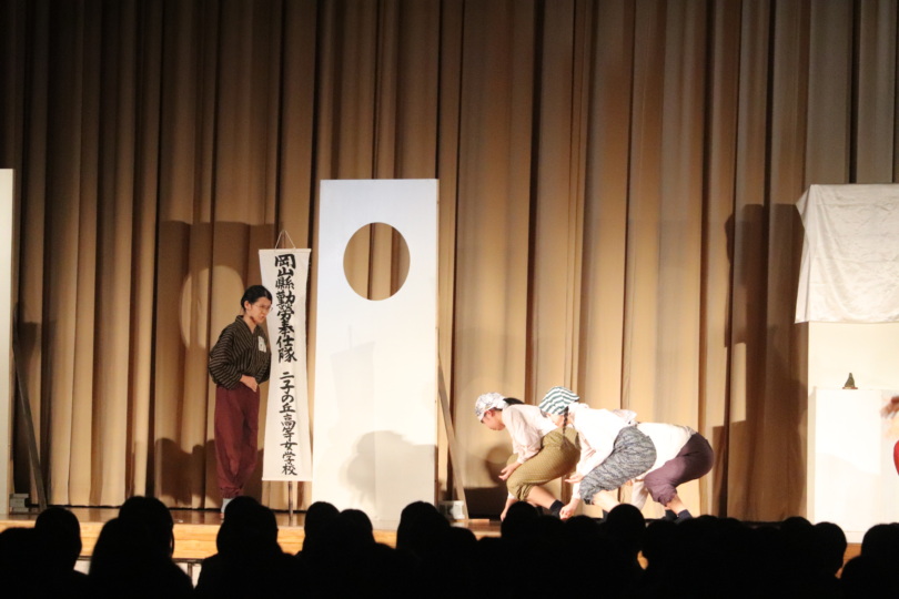 まず演劇部が清心学園の歴史を伝える特別公演として、9月に岡山県高等学校演劇発表会 備中地区大会にて優秀賞をいただき、11月15日15:00からハレノワで公演予定の『学園誌に寄せて』を上演しました。(受賞に関してはこちらをご確認ください。)