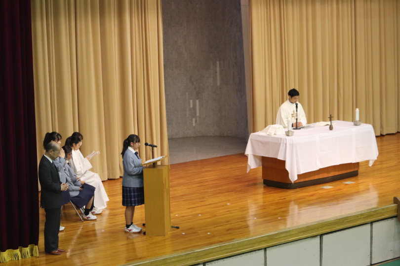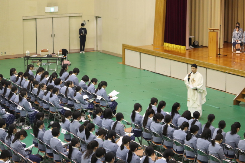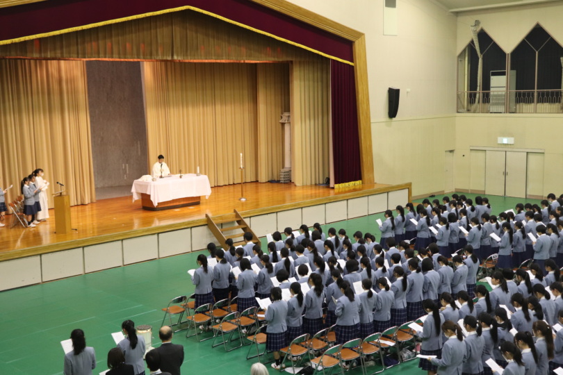 その後、歌の練習をして、ミサについて説明を受けてから、創立記念ミサを行いました。