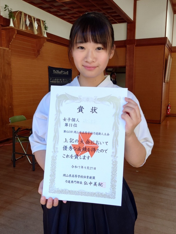 中国高等学校弓道新人選手権大会岡山県予選 第11位 中国大会出場決定