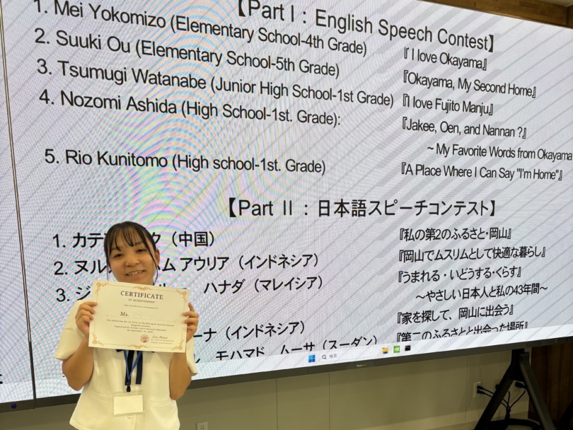 第1回Femmeインターナショナル岡山 英語スピーチコンテスト 第1位