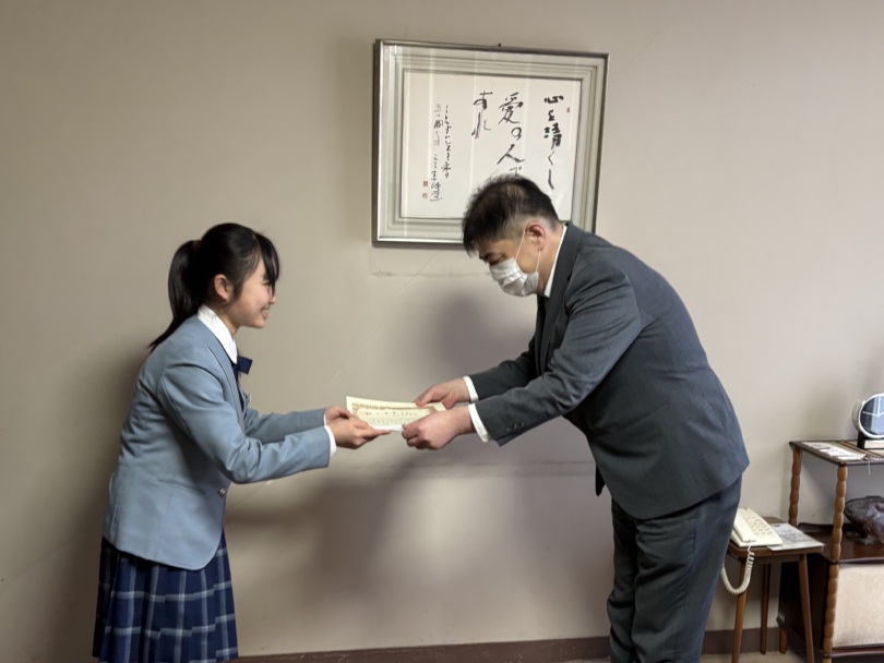 終業式後、冬休み中の過ごし方や注意の連絡、生徒会による校則改訂のお知らせ、ND委員によるクリスマス献金・献品の報告、清心祭実行委員によるタイトル公募や新実行委員募集のお知らせがあったほか、表彰式が行われました。
