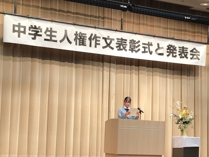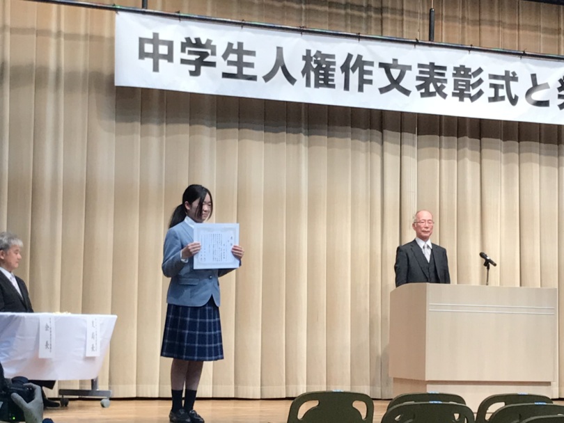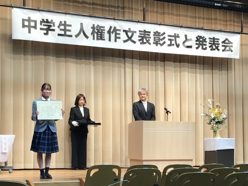 第44回全国中学生人権作文コンテストにおいて、本校の生徒が表彰式に参加しました。