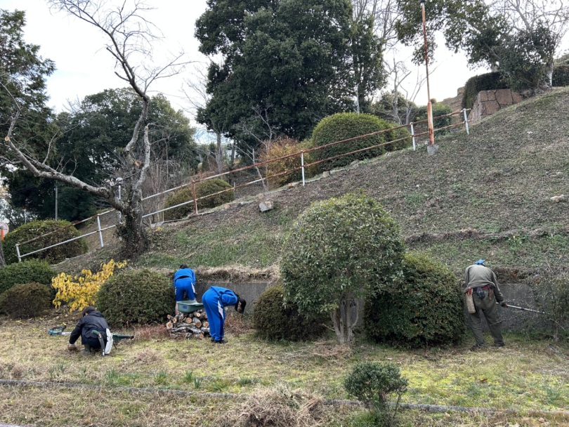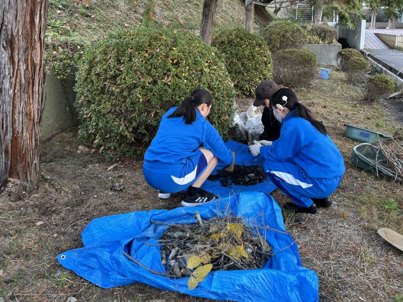 1月のグローバルセミナーで環境再生医の方による講演を聞いたことをきっかけに、樹木の管理作業を通した大地再生に興味を持った生徒たちが記念館横の芝生周辺で活動を継続しており、まもなく1年を迎えます。