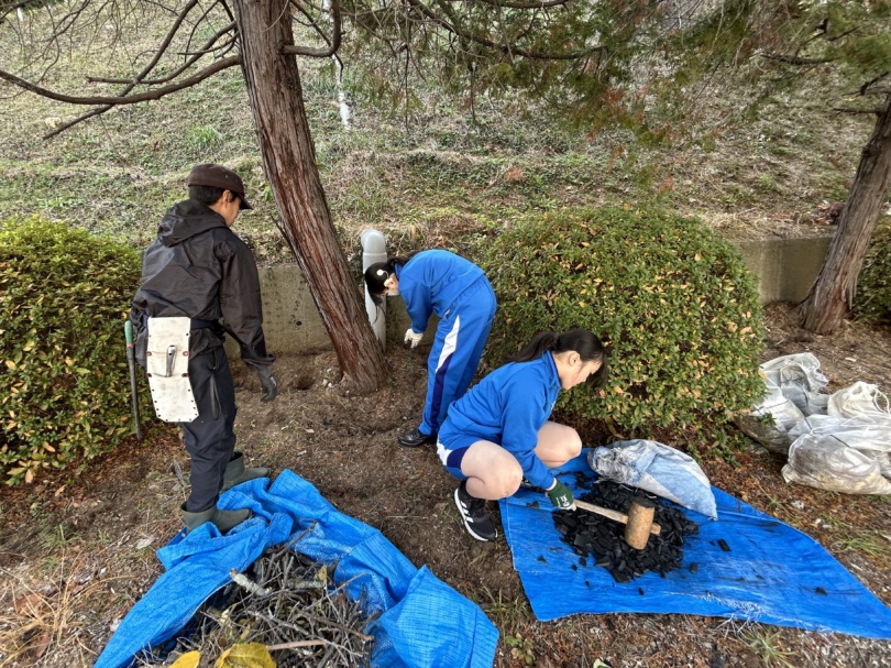 土壌改善のため、炭や木材チップを入れ込む作業も施しました。