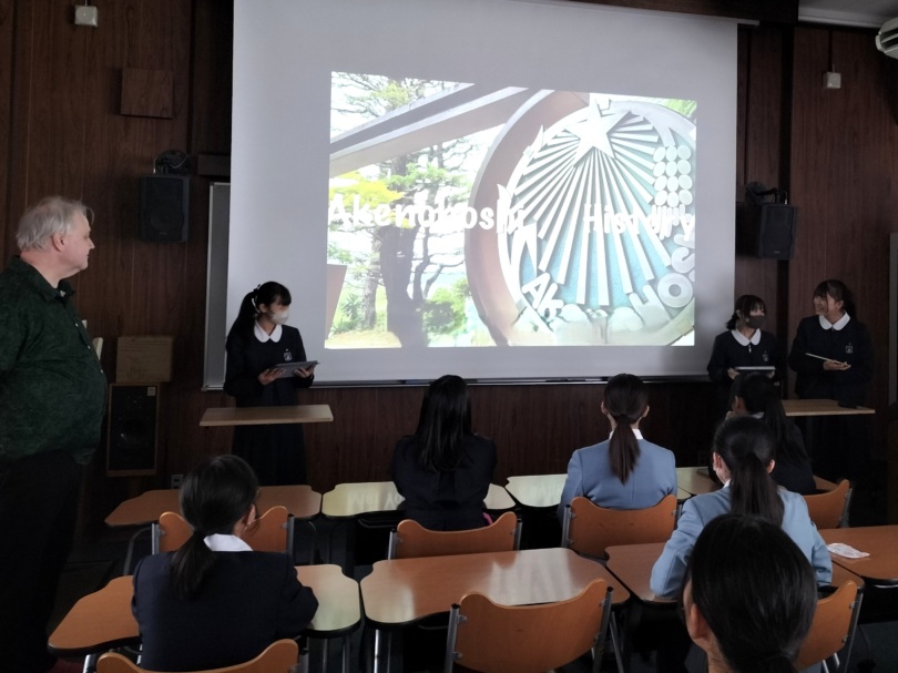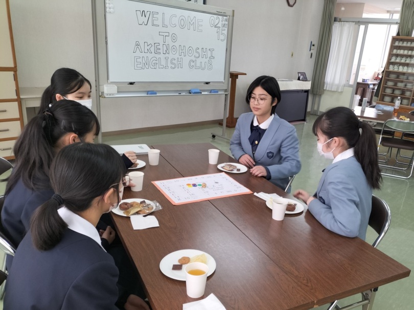 2月15日、英語部の生徒が福山暁の星中学校・高等学校にて英語部交流会に参加しました。お互いの学校について話したり、暁の星の生徒のみなさんによるスライド発表を見せていただきました。発表はそれぞれの地元地域、日本や世界における学校生活に関するものでした。今後も交流が続くことを楽しみにしています。