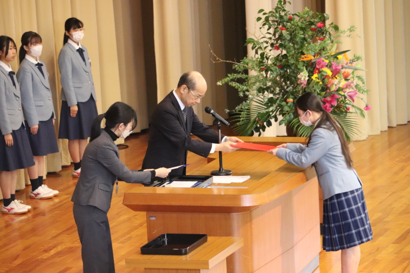 その後、様々な活躍を称える表彰式や、全国大会に出場するバレーボール部の壮行式が行われました。