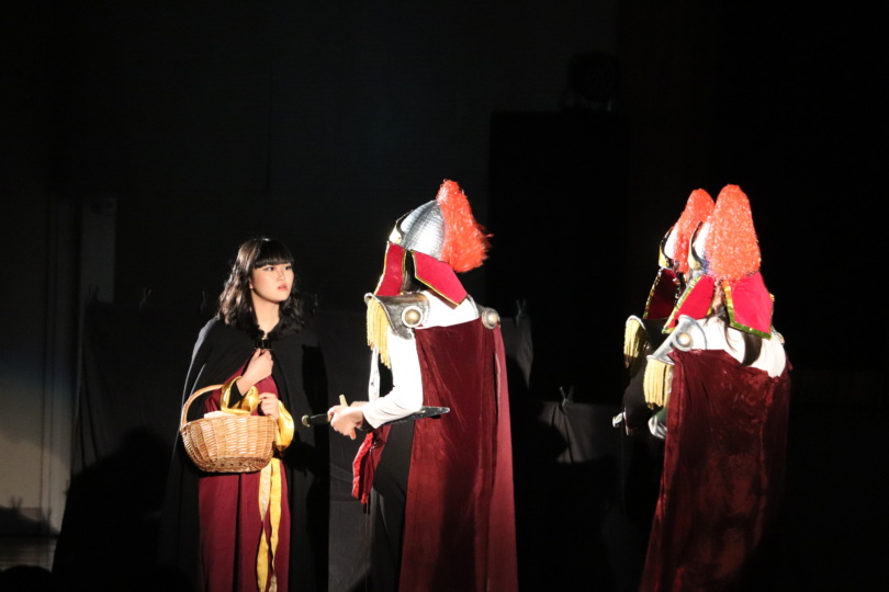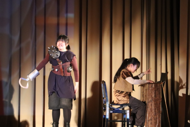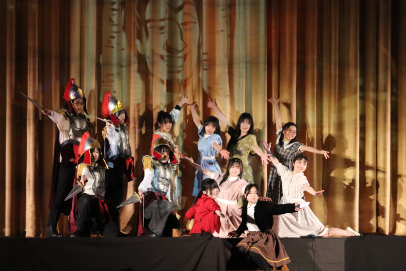 役者はもちろん、衣装・舞台装置・大道具・小道具の作成、音響・照明などもすべて生徒が担当します。