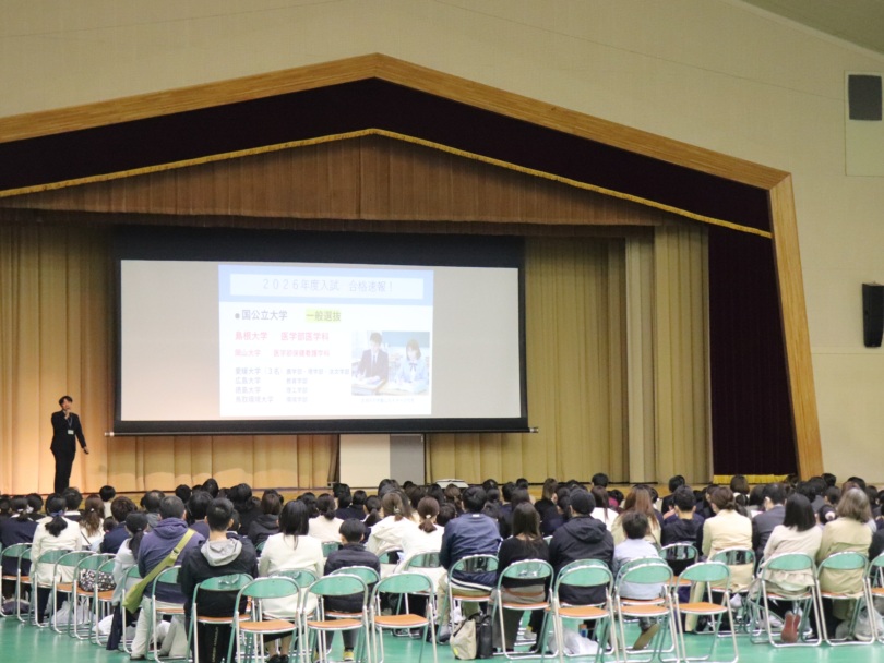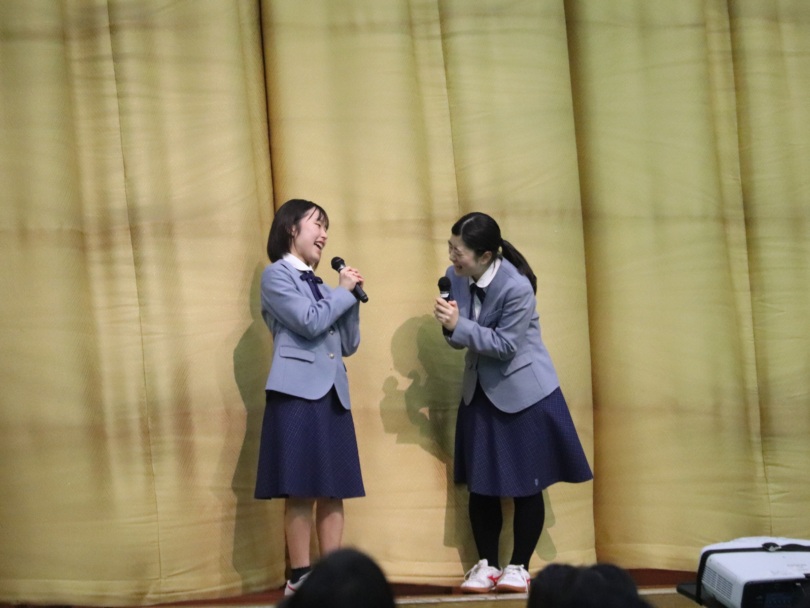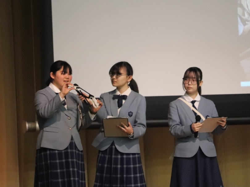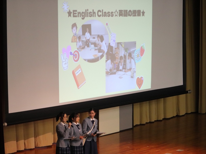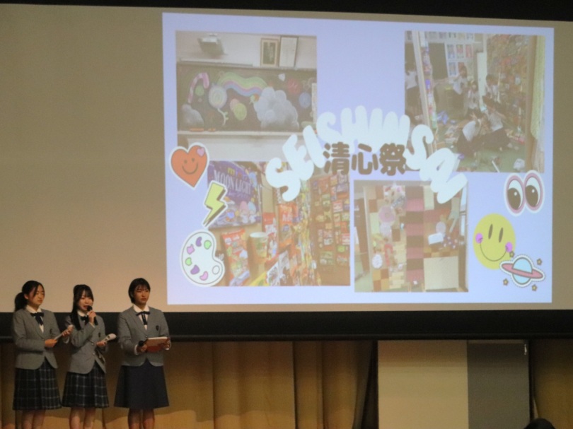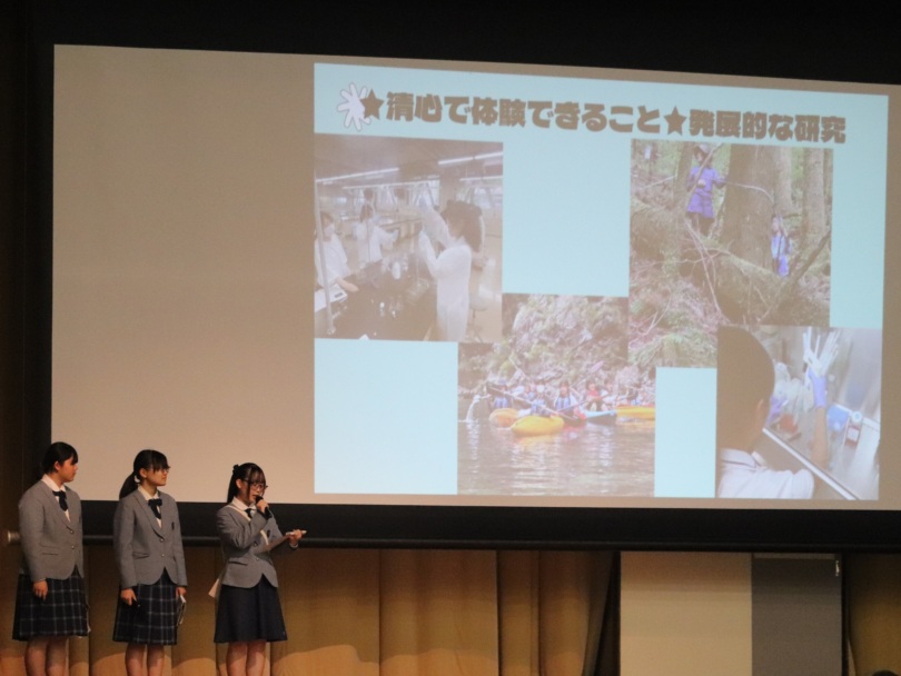 その後、英語や探究活動、行事、部活動など清心らしさがつまった学校紹介を生徒が担当しました。